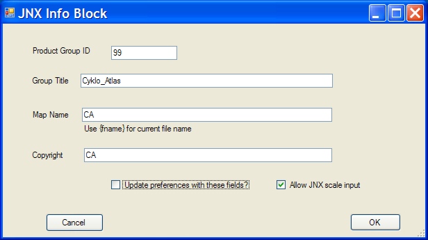zapytać o parametry nagłówka pliku JNX, w tym MapID (Product Group ID),