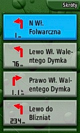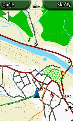 Naprawdę do odczytania napisu Lesko musiałem - w realu - mrużyć oczy. Jak wspomniałem wyżej - nazwy miejscowości wyświetlane systemowo są dość małe, ale np. punkty mapy po zmianie wielkości czcionki na "średnią" są wielkości czcionki "małej" w 60CSX i są naprawdę bardzo czytelne. A co ważniejsze są przyklejone do ikonki, nawet tej zmienionej plikiem TYP, co niestety w 60CSX jest marzeniem ściętej głowy. W 60CSX nazwy odskakują od ikon i czasami nie wiadomo która nazwa dotyczy której ikonki. |